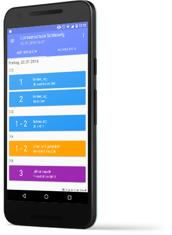 Mit unserer kostenlosen App kannst du den Vertretungsplan deiner Schule mit deinem Smartphone oder Tablet komfortabel und mit einem tollen Design abrufen. Bei Änderungen für die gewählte Klasse oder den gewählten Lehrer wirst du automatisch benachrichtigt.