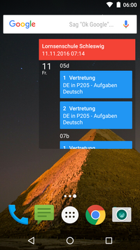 Mit dem heute erschienenen Update auf Version 3.1.0 gibt es neben der üblichen Behebung von Abstürzen und Darstellungsfehlern noch ein neues Feature für Nutzer der kostenpflichtigen Version Vertretungsplan Pro: Die Farbe der Titelleiste des Widgets kann jetzt in den Einstellungen verändert werden.